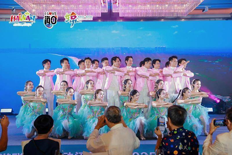 文艺表演环节,琼台两地代表带来了相声《台湾地名谜语》、歌舞《海风里的相遇》《千里共婵娟》、舞蹈《一起去海口》《请你常到海南来》、合唱《久久不见久久见》《期待再相会》、吉他弹唱《痛哭的人》《后来》《今天你要嫁给我》、歌曲《请到天涯海角来》《外婆的澎湖湾》及配音情景短剧《当苏小轼遇上小丸子》等节目,现场掌声热烈不断。演出最后,《那鲁湾情歌》的歌声响起,海口市艺术团的舞蹈演员走入观众席,与两岸嘉宾携手起舞,现场氛围如家人团聚般欢乐而温馨,生动诠释了“两岸一家亲”。